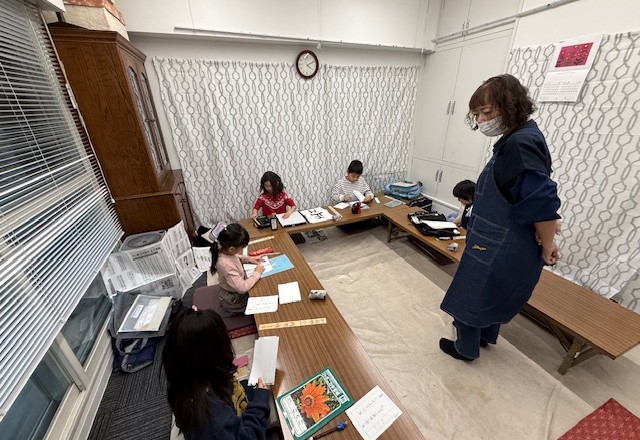 また、中学生や小学生の教室では、みなさん学校行事で忙しい中でも休まずに毎週のお稽古日に元気な顔を見せてくれます。毎年開催される「書心学生展」にも優秀な作品を出品しています。筆を持って半紙に向かい、鉛筆で一画ずつ丁寧に文字を書く時間を持つことはとても大切です。