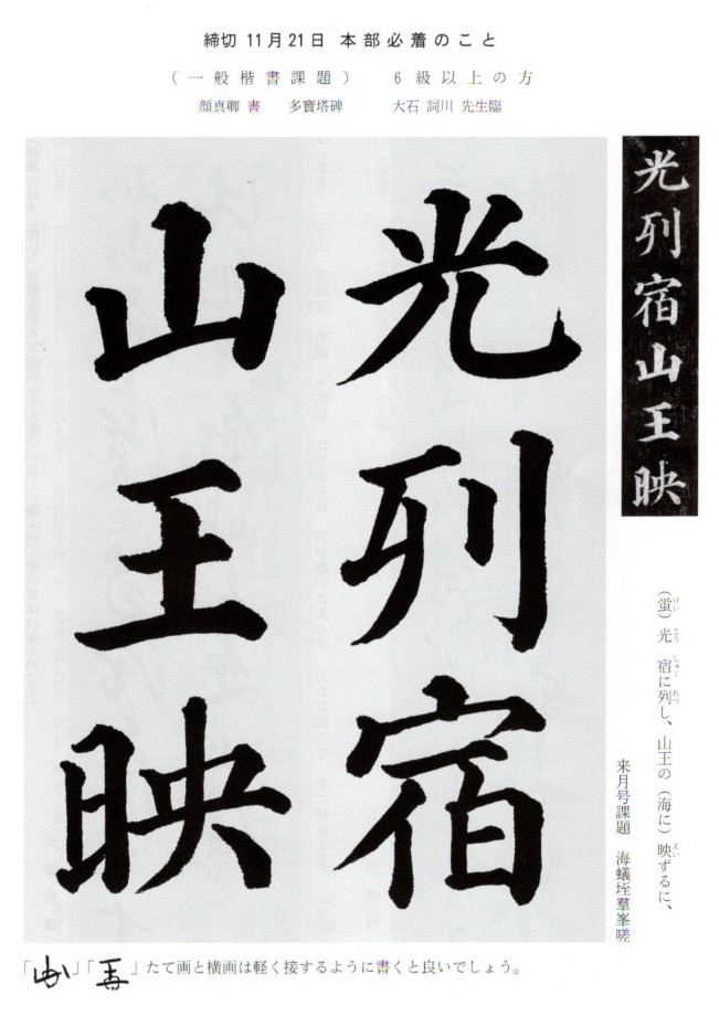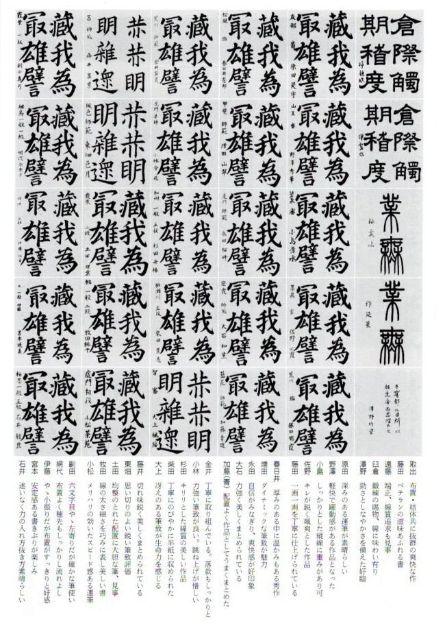そこで先ず手始めとして「多寳塔字典」をまとめることにした。多寳塔碑の本文全2018文字(親字846字)を重複をいとわず、縮尺せずに収録し、同じ碑で同一文字が如何に書き分けられているか、同じ点画がどのように変化しているかなど、比較研究し易いようにした。本書を顔法の揺籃期の書法を探る手がかりとして机辺におかれ、更に創作の友としていただきたい。