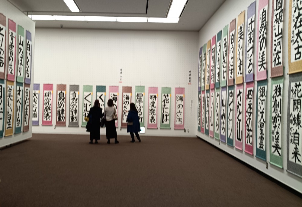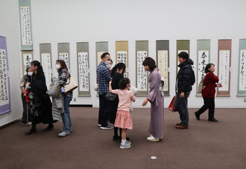 「第60回書心展」が上野公園内の「東京都美術館」で、12月4日(木)から11日(木)まで開催されました。同時開催の「第59回書心学生展」と合わせて8日間の来場者は4000人を超えました。今年は第60回の記念展で、歴代会長先生の作品とプロフィールが展示されました。書心展の総出品数は262点、昨年より新設された「一般半切部」が好評で、出品数が年々増加しています。会場には漢字・かなのいろいろな書体の作品が展示され、来場者が立ち止まってじっくり眺める姿が多く見られました。また第52回展から将来の書道界を担う若い世代を発掘・育成する目的で、16歳から23歳までの「U(アンダー)23の部」が設けられて今年で9年目、若い世代の作品も充実しています。