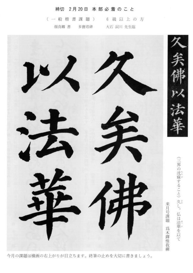 そこで先ず手始めとして「多寳塔字典」をまとめることにした。多寳塔碑の本文全2018文字(親字846字)を重複をいとわず、縮尺せずに収録し、同じ碑で同一文字が如何に書き分けられているか、同じ点画がどのように変化しているかなど、比較研究し易いようにした。本書を顔法の揺籃期の書法を探る手がかりとして机辺におかれ、更に創作の友としていただきたい。